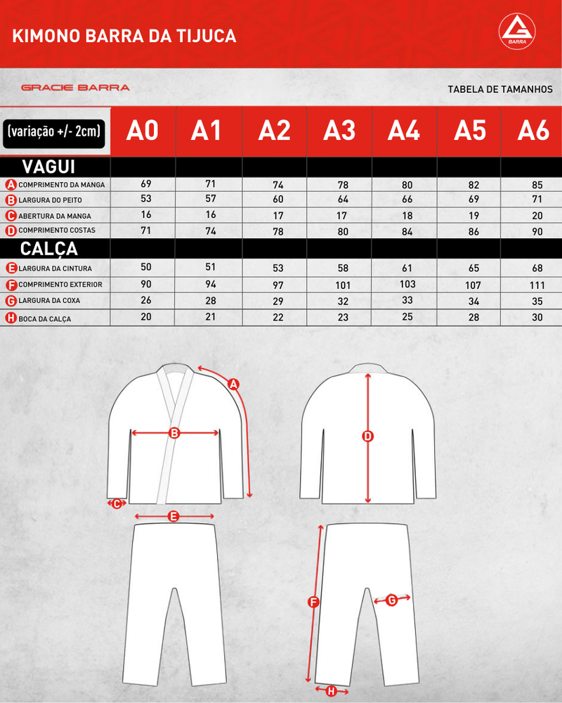 O Kimono Barra da Tijuca homenageia o berço da Gracie Barra e as origens do legado do nosso time. Ele representa onde nossa jornada começou – dentro da primeira escola Gracie Barra no Rio de Janeiro – e celebra a base de fraternidade, integridade e desenvolvimento que continua a guiar nossos alunos em todo o mundo. Este lançamento de edição limitada homenageia essa história ao mesmo tempo em que oferece a mesma qualidade e confiabilidade desenvolvida para o treinamento atual.